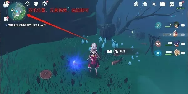 5、找到2个小孩进行对话即可,开始供奉栖木、拾取羽毛(小地图会自动标识羽毛位置人,如下图)等后续流程; 6、第3个羽毛会跑,大家要多拾取几次,还得干掉几个怪才行;