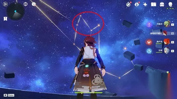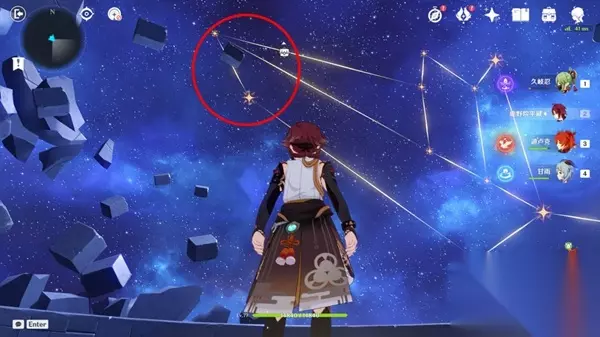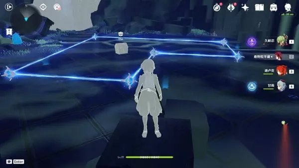 来到星象仪下方,通过传送门,进入莫娜的房间,触碰奇异的摆件,来到神秘空间,踩四个星盘,这里拼的是莫娜的星座,随便踩踩就能过了,记住要等星星移动停止,出现连线再去踩下一个,如果踩上去不动,那就跳一下或者换一个踩