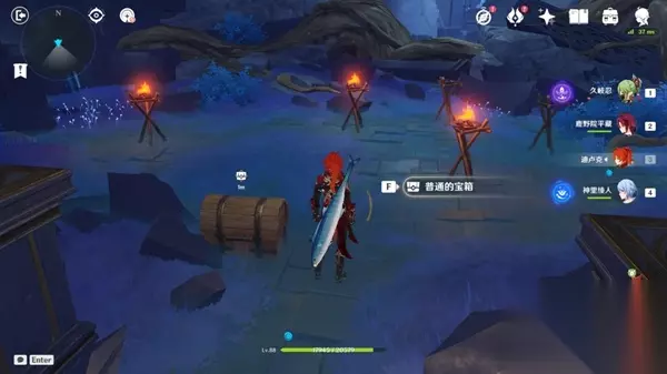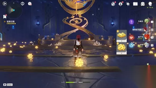 然后前方有个星阵,走上去点击上升,水满之后北方向有个宝箱,拿完宝箱点下降
