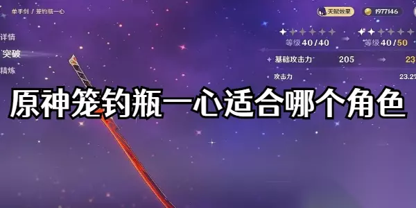 原神笼钓瓶一心是玩家在做完枫原万叶的传说任务候获得的一把四星限定单手剑武器,很多玩家不知道这把武器适合什么角色以及其精炼方法,小编下面就为大家带来详细的介绍,感兴趣的小伙伴可以来看看。