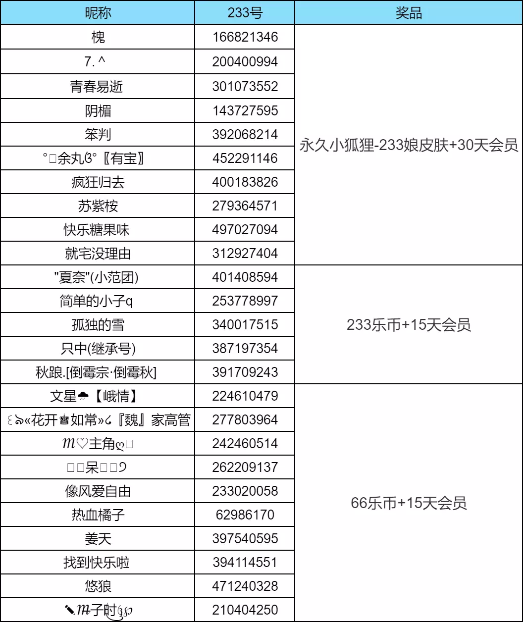 二等奖盒子:从正确参与抽取5位---[233乐币+15天会员]