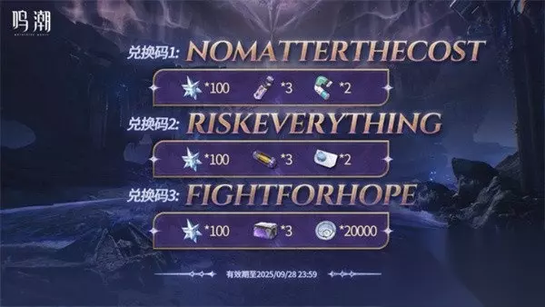 鸣潮2.7版本的前瞻直播在本周五正式官宣了下个版本将在10月9日正式更新上线,有着新角色仇远和嘉贝莉娜将和玩家们见面,官方给玩家们准备了前瞻直播兑换码,许多错过的小伙伴不清楚2.7前瞻兑换码是多少,今天小林将给玩家们带来关于鸣潮的2.7前瞻兑换码分享。 鸣潮2.7前瞻兑换码是多少 300星声兑换码(有效期至2025/09/28 23:59) NOMATTERTHECOST RISKEVERYTHING FIGHTFORHOPE