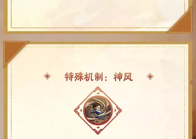 释放神风后使用二技能会得到强化,烈斗发动范围更大、持续时间更久、更猛烈的神风,若命中敌人,飓风将席卷敌人向前移动推出,随后烈斗转身一击切开飓风,使用后会积攒大量风之力(能量条)。