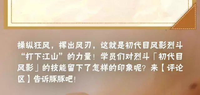 当风之力(能量条)蓄满,烈斗进入强化状态时,点按奥义键可消耗4个奥义点和所有风之力(能量条)释放奥义,烈斗会凝聚查克拉向前连续丢出数道风刃,随后风刃形成一道巨大的网,将敌人和山体一并切割。豚豚小提示:奥义结束后,可衔接二技能继续输出哦!