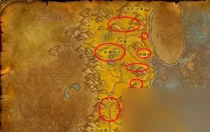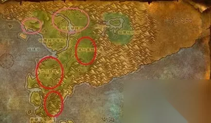 贫瘠之地这里你能遇到的剥皮对象有:白毛座狼、长颈鹿、草原科多兽、赤鳞镰爪龙、敏捷的平原陆行鸟、变异曲蛇、变异爬行者、草原科多兽、乱齿土狼、科卡尔猎犬、雌性草原狮等动物。图上红线是动物比较集中的,除了陶拉祖营地下面那个之外,上面比较大的是草原狮的聚集地。而陶拉祖营地下面则是雷霆蜥蜴与飞蛇的聚集地。 小贴士:前面介绍过哀嚎洞穴是个好地方,如果你进去了可以升到125. 等剥皮剥到了125的时候就可以回去学高级剥皮了。学习地点>>德拉恩、奥格瑞玛、莫高雷 2.等级150-225:荆棘谷/辛特兰 荆棘谷这里你能遇到的剥皮对象有:猎豹幼崽、血顶猛虎、暴怒的银背猩猩、老年荆棘谷猛虎、老年深喉猎豹、幼年荆棘谷迅猛龙、老迈的薄雾谷猩猩、晶背蜥蜴、荆棘谷猛虎幼崽等动物。荆棘谷可谓是剥皮的圣地,这里的动物比任何地方都要多,如果你前面没有去暮色森林剥中皮的话,你也可以在这里剥到。粉红色所描述的地方是主要的中皮出产地,这里你能找到猎豹、猛虎和荆棘谷迅猛龙这三系野兽的幼崽,他们主要盛产中皮。红色所描述的地方主要是一些重皮“出产商”的聚集地。有老迈的薄雾谷猩猩、晶背蜥蜴、血顶猛虎等动物。 辛特兰这里你能遇到的剥皮对象有:癞皮银鬃狼、银鬃狼、银鬃捕猎者、银鬃嗥狼、训练有素的锋喙狮鹫等动物。深红标识描述的地方主要是狮鹫,而粉红色所描述的则是银鬃狼。这里主要剥到的就是重皮了,靠近海边那里有部落出没,如果你觉得不安全就在营地附近剥吧。 剥皮剥到200你就可以去跟剥皮师傅学习专家级剥皮了,学习地点>>马瑞斯·格兰治、巴尔萨斯·裂石、艾拉迪尔、雷米勒 3.等级225-300:安戈洛环行山/冬泉谷