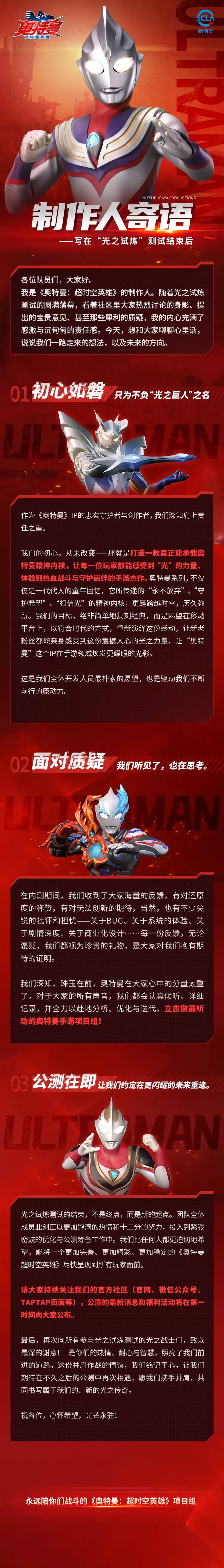 制作人寄语——写在“光之试炼”测试结束后