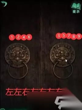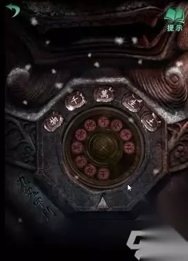 把拨号盘放到门外左边石像的盘上,按照【壬丙丁乙甲】的顺序旋转,获得【钥匙】,取下拨号盘放到右边的雕像,用钥匙打开左边院子里锁住的门,桌上有个锁,左边旋转,右边的密码为【鬼卜歹心】,打开箱子得到的线索联系门外柱子上的字,得知右边石像的密码为【物千万生土】获得【钥匙】打开庭院的门