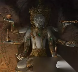 4、将两边的石像全部转到面朝前方。