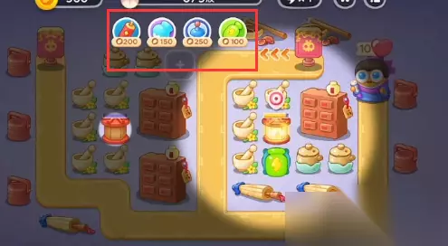 2、开局放置普通炮塔开图,前方放置两个普通炮塔清怪,遇到小车兔就锁定车,不然守不住。