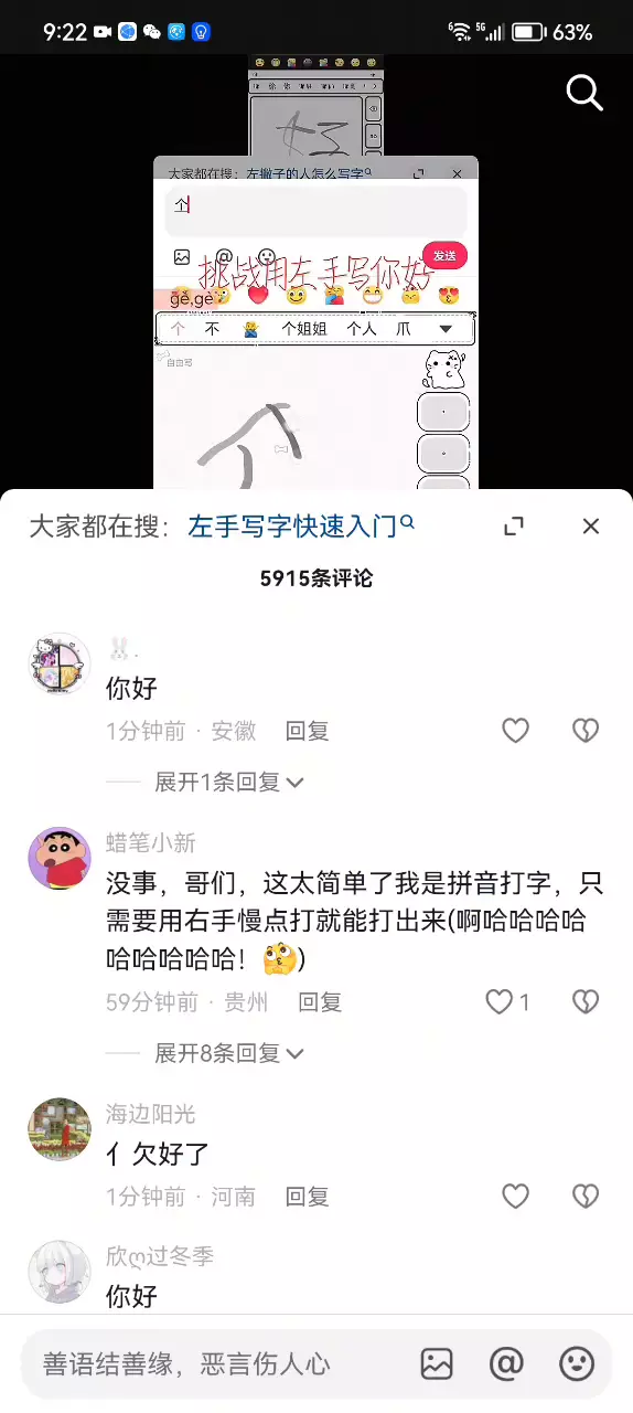 挑战用左手写你好