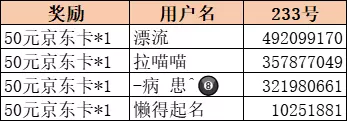 随机从按照正确格式参与活动的队员中抽取4名获得50元京东卡*1