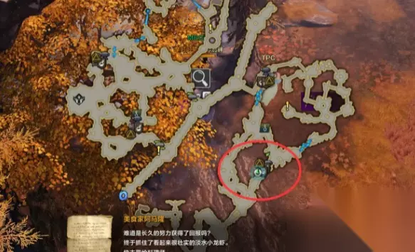 5、淡水小龙虾粥 玩家需要先获得一系列buff才可以捡起本料理的原材料淡水龙虾。 首先玩家要在料理材料商人处购买灰色鱼饵材料x5,红色鱼饵材料x1,黄色鱼饵材料x2。 先传送到坎达里亚领地,使用刚刚买到的那些材料即可获得持续4分钟的buff,再去下图位置获得原材料淡水龙虾,即可制作淡水小龙虾粥。