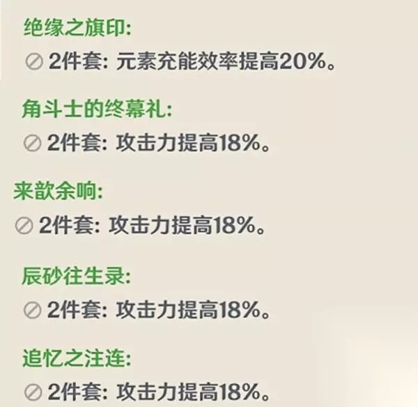 ①首选西风秘典,副属性加45.9%充能效率,被动效果攻击造成暴击产能量球,可以促进全队的能量循环,给夏洛蒂用挺不错的。 ②试作金副属性是加生命,虽然不能提高治疗量,但是能让夏洛蒂更肉一点,被动效果开大给自己回能量,给全队回血。 ③证誓之明瞳副属性加攻击力,放战技后给自己加充能,也是非常契合夏洛蒂的。 以上武器都没有的话,其他凡是加攻击力的或者加充能的武器都可以带(你武器多的话给她带锁和厕纸这些都没问题,猛猛加攻击力)。圣遗物 2绝缘/2角斗/2余响/2辰砂/2追忆(任意2+2)