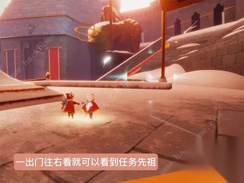 5、出门后右转看到发光的小女孩,这就是梦想季第四个记忆碎片; 6、点亮小女孩后,来到霞谷神庙大门前,观看一段动画;