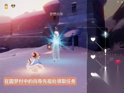 1、点击梦想向导领取第四个季节任务,看完漫长的动画提示; 2、动画提示玩家要去点亮下图里的机关,乘坐新的缆车;