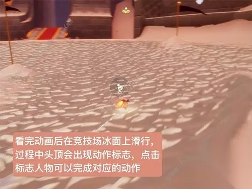 7、看完动画后在熘冰场上滑行,点击旋转按钮开始跳跃; 8、做完所有的指定动作后即可完成梦想季第四个任务,领取一颗爱心奖励。