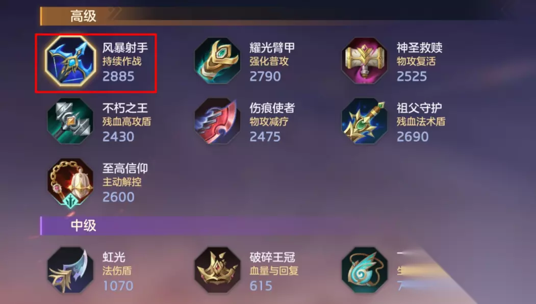 第二个大件出“风暴射手”,45物攻,450耐久,45技能急速以及3%的吸血,普攻加移速叠攻击,满层还有额外的攻击和吸血加成,对于雅典娜这种越战越强的英雄,这个装备就非常适合,同样也很适合重装战士类的英雄。第三个大件出“自然守护”,700血100法防40技能急速,并提升25%的受治疗效果,一般是队伍里有强力奶妈的时候出这个装备,可以让提升自己的坦度,当然也比较契合那些本身就有高回复手段的英雄。
