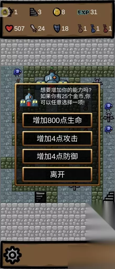 关键点1:在第三层时,建议先获取武器,然后再去取宝石。在吃掉血包并开启商店以增加防御力后,不必急着去一层取魔眼,而是先刷鸟和黄色怪物。当防御力达到大约38时,再返回一层取魔眼。关键点2:当怪物的攻击力低于角色的防御力时,可以无损地打怪,除非遇到一些特殊怪物,例如那些会扣除100血量或者扣除三分之一血量的怪物。关键点3:不要急于使用十字架!在游戏后期使用,效果会更好。关键点4:当进入二阶商店后,尽量使用金币进行升级,只有在迫不得已的情况下才使用经验升级。优先使用金币,直到经验值达到270时再考虑使用经验进行升级。关键点5:尽量节约钥匙的使用,哪怕需要多走一些路程。后期需要通过出售钥匙来升级属性。尽量不要使用血包,因为在击败红发后,你可能需要在星光层使用血包。