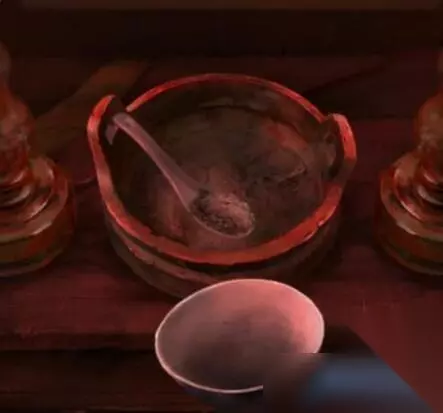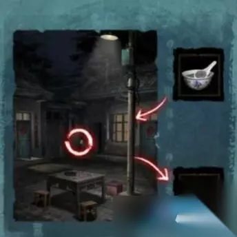 7、使用装有香灰水的壶对八仙桌上的茶杯使用,杯子会出现线索。