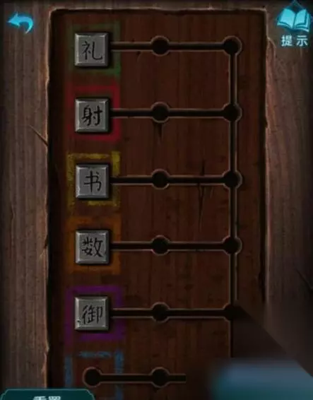 9、根据茶杯上的文字和颜色,得到数字,顺序是:礼射书数御乐,打开后得到柜子钥匙。