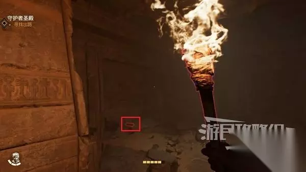 点燃火把驱逐蝎子,与另一侧角落的开关互动开启左边大门,拾取里面的锤子。