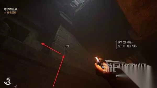 开启对面的机关,不远处有一个转角楼梯,爬到楼梯的边缘沿路走可以找到一个古老文物,最后离开圣殿完成守护者圣殿支线。