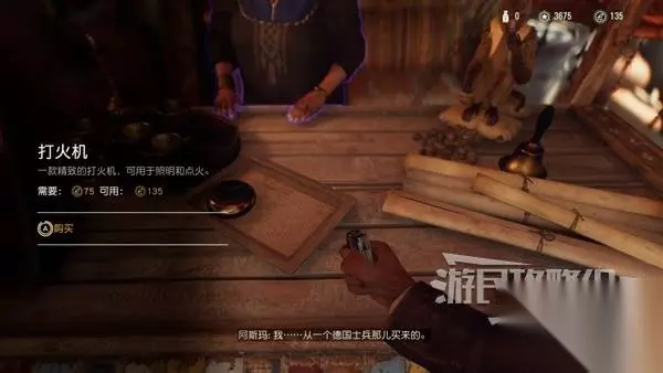 与商店的NPC与阿斯玛对话,对她拍一张,然后购买重要道具【打火机】。