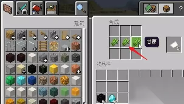 提前准备材料:1本书、4个黑曜石、2个钻石。书需要通过1个皮革 3张纸合成获得;黑曜石需要用钻石镐挖,也可将水倒入岩浆中获得;钻石一般在地底Y=5-12左右的位置可找到。合成摆放位置是,最上面是书,其次是钻石、黑曜石、钻石,最下面是3个黑曜石;摆放完成后即可生成一个附魔台。 1砍甘蔗制书制作附魔台需要用到书、黑曜石还有钻石,先制作书,在河边砍一些甘蔗。