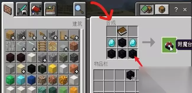 7制作成功这样附魔台就制作成功了,将附魔台放在地上右键点击一下 即可打开。