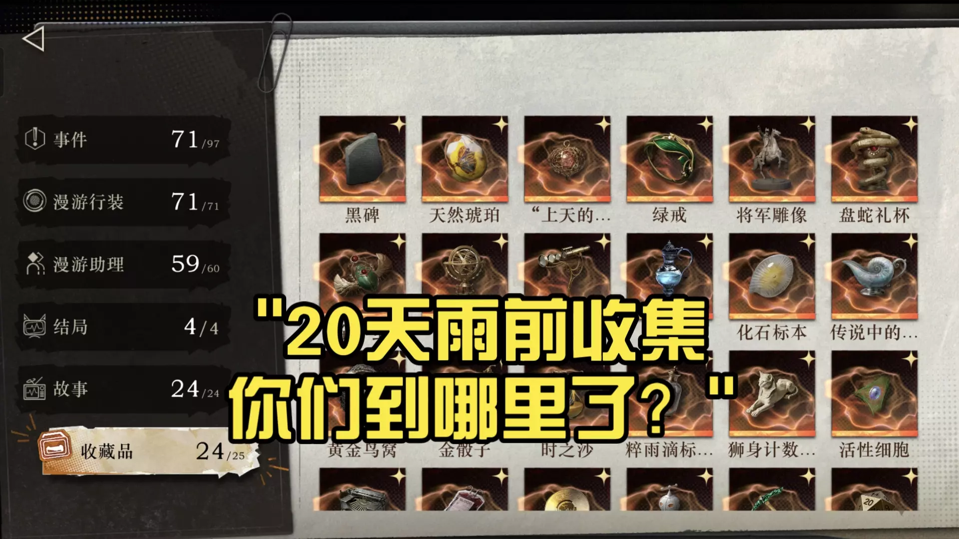 欢迎来到这个专为追求100%完成度的玩家打造的精彩网站!在这里,你可以发现物品、资源、收集品、地点等各类游戏内容! 简介 为你推荐这款寻找收集品并达成游戏100…