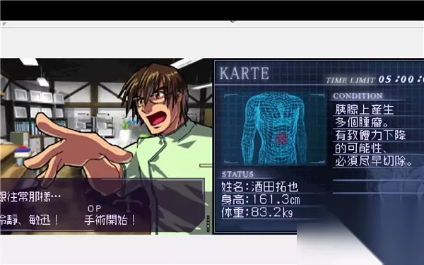 超执刀2攻略全流程第一章介绍了多种紧急手术,包括腿骨粉碎性骨折、肠道肿瘤、胸腔肋骨骨折、枪伤和皮肤病。玩家需通过消毒、缝合、吸血等基础操作,迅速修复患者伤口,保持心跳,并处理复杂的骨骼、肠道、肺部及皮肤问题。在紧张的时间限制下,每一项手术都要求精准操作与快速反应,挑战玩家的医学技能与应变能力。