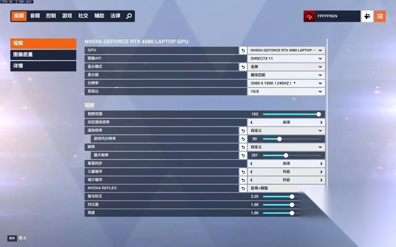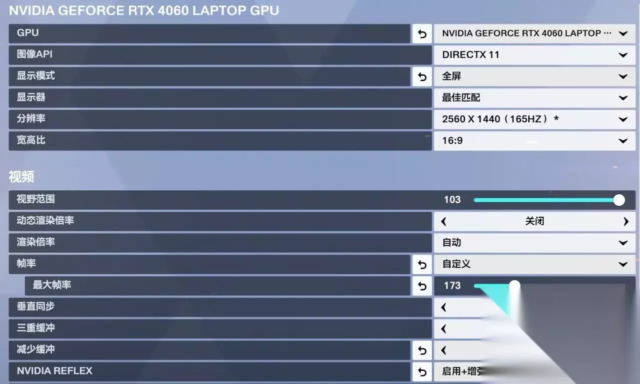 动态渲染倍率:关闭(避免游戏自动调整影响流畅度) 最大帧率:设为显示器刷新率+10(如 240Hz 屏幕,设为 250) 垂直同步:关闭(减少输入延迟) 三重缓冲:关闭(避免增加延迟) 减少缓冲:开启(降低输入延迟,提升响应速度) NVIDIA Reflex:显卡较好建议“启用+增强”,否则仅开启
