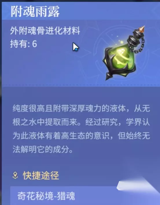 虽然附魂雨露也能通过副本获取,但是多了也没有关系可以用来合成引魂花露,暮光夕颜是武魂进化材料,可以通过采集来获取,但每日都是有一定采集上限的,建议大家先去采集,若出现上限问题再来购买也可以,而银辉铃兰同样武魂进化材料,但是每日采集上线是5个,比较稀少所以能买就买。