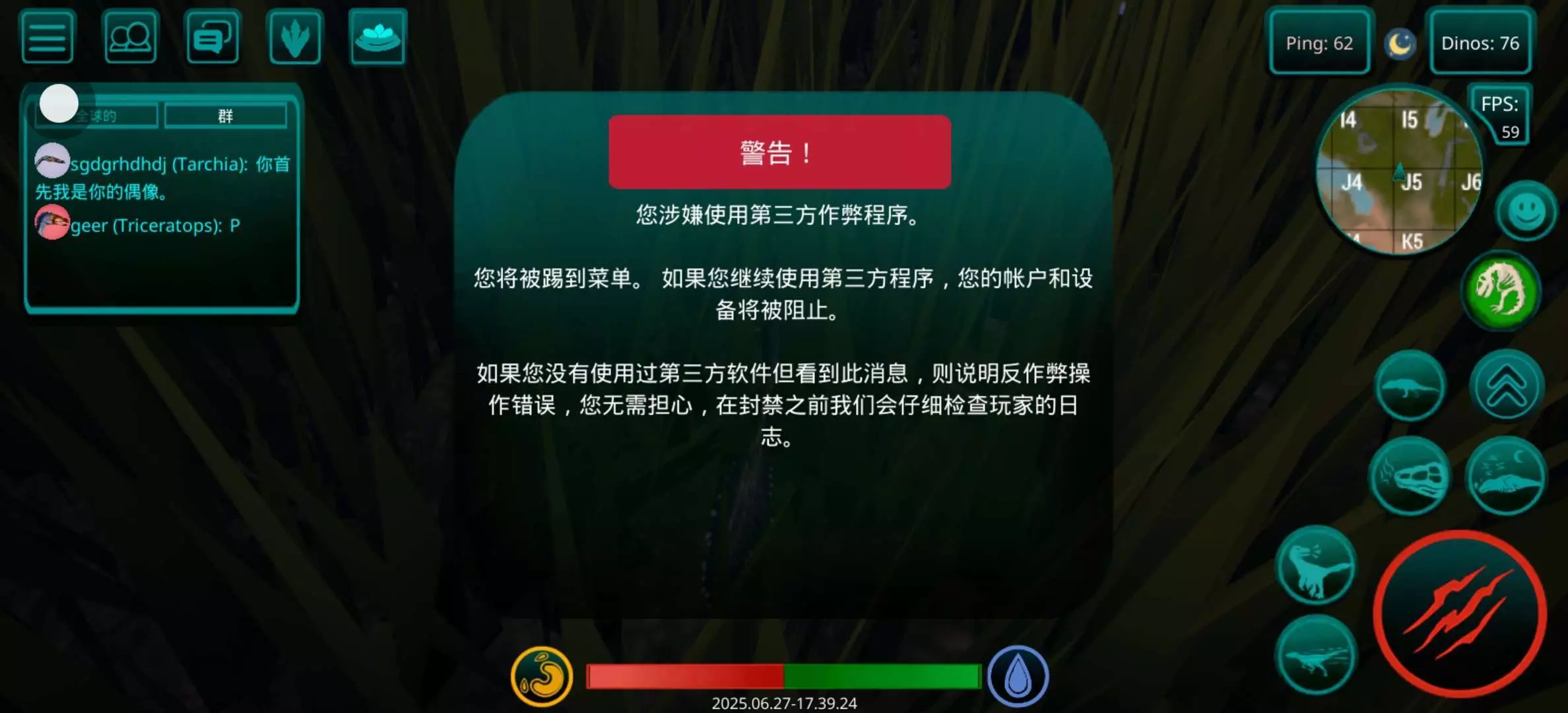 我正准备养暴龙突然弹了个警告然后给我退出来了