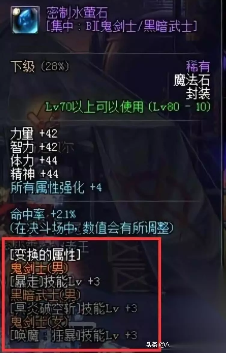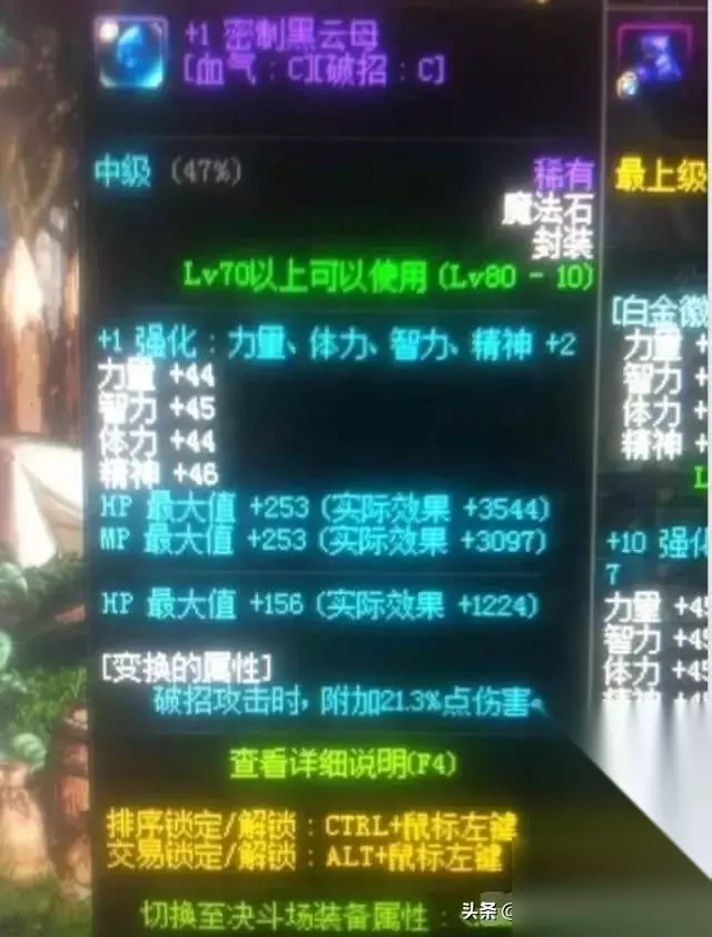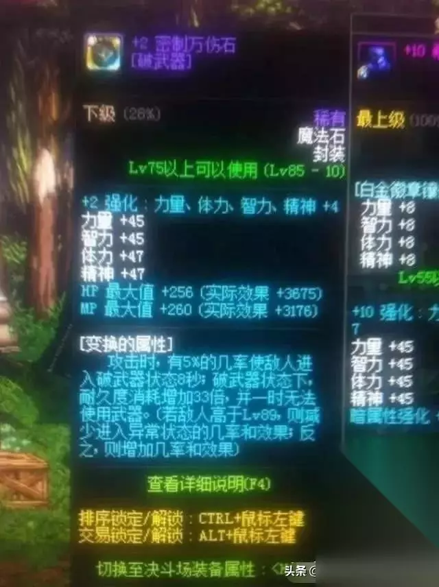 这里金币10%无关紧要,大家关注的重点是后面的稀有装备掉落率+3%。 解释一下: 1、稀有装备就是指紫装,不包括材料,神器和史诗,但是包括假紫; 2、+3%就是增加3%,比如原来一件紫装爆率1%那么带上就是4%,并非1.03%; 所以靠它爆粉爆SS就别指望了,开放70级假紫之前这个东西可以说毫无价值。 但是70级假紫开放了,从这个版本开始,以后都是同时期的JP假紫超越传承和一些高级粉装的属性了,这个暴率的增加就显的很有意义了。