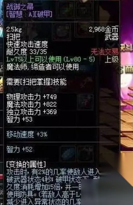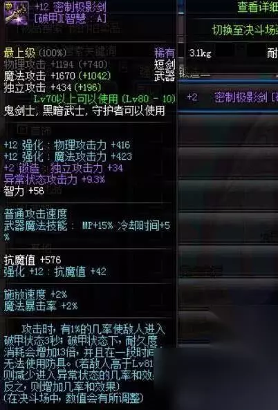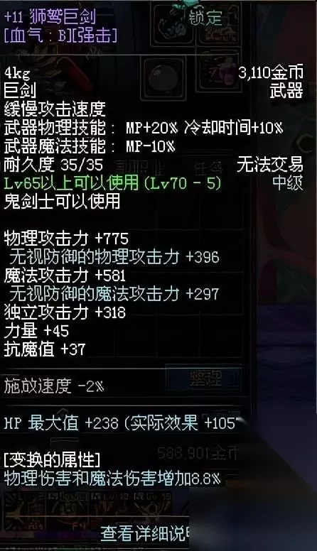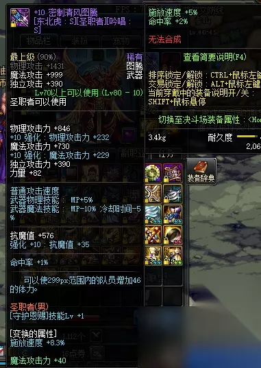 可以看到此武器已经加到3.6%的双速,如果是S属性的话,buff效果岂不是直追奇幻白虎系列称号?