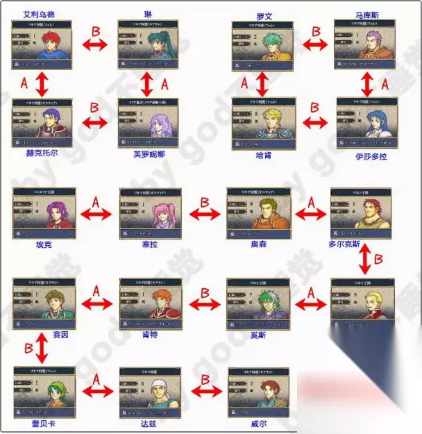 火焰纹章烈火之剑支援关系表一览 关系表一览: