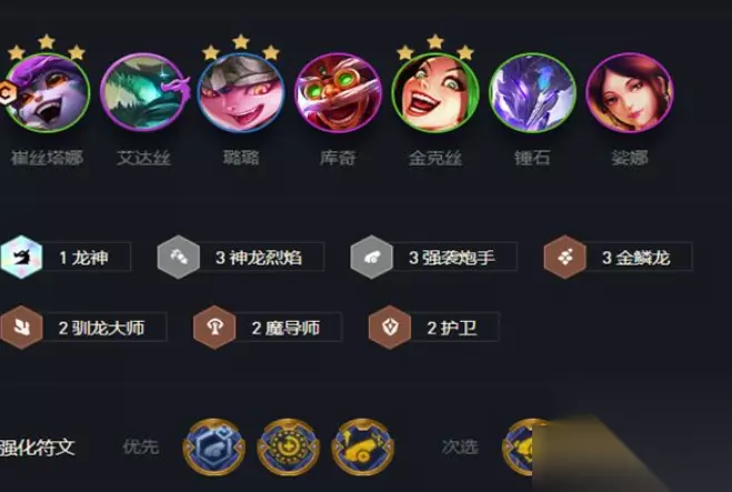 云顶之弈s7驯龙射手小炮阵容也是一套比较好用的上分阵容,很多的小伙伴还不知道云顶之弈s7驯龙射手小炮阵容怎么搭配,今天233乐园的小编就给大家带来了详细的玩法介绍,有需要的小伙伴就一起来看看吧! 驯龙射手小炮阵容搭配和运营方式一览 阵容组成为小炮,艾达丝,璐璐,飞机,金克丝,锤石,琴女。羁绊效果为1龙神3神龙烈焰3强袭3金鳞2驯龙2魔导2护卫。海克斯选择强袭相关海克斯,DD街区,星界赐福等。