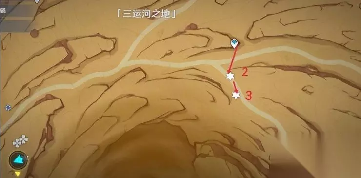 【感叹号标记处有一个摩拉箱,点击交互会出现一个洞口。本P在这个洞口下面】 8、三运河之地右下方沙脂蛹*5