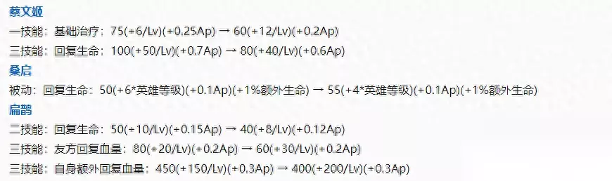 蔡文姬、桑启、扁鹊的回复效果降低。(因为重伤装备被削了)