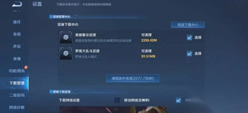 6、资源清除 设置内新增资源管理中心,可将不需要的模式或美术资源清除,节省手机内存空间,以后需要还可以重新下载。