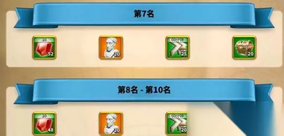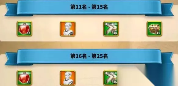 2、总排名奖励 活动结束的时候总排名前100名的执政官会通过邮件收到相应的排行奖励。这里就截图了前25名的奖励。