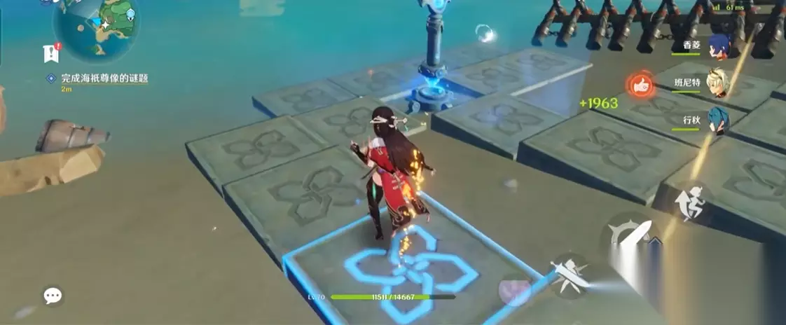 进入秘境后,玩家需要解开四个圆盘上的鱼雕像谜题。这些鱼雕像两两联动旋转,需要通过参拜海祇尊像锁定部分雕像,使单个雕像能够独立转动。每个圆盘的解谜方法是将鱼雕像的发光面调整至朝向圆盘中心。注意左上、左下、右三个圆盘需先转动雕像再参拜尊像,而上方圆盘则需要先参拜尊像再转动雕像。每完成一个圆盘的解谜,都会触发一波水之幻形敌人的攻击。