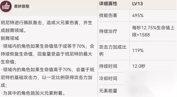 3、Q技能·美妙旅程 对敌人造成一个范围火伤害,区域之内角色可以根据生命值高低回血,生命值会高于很多攻击力。