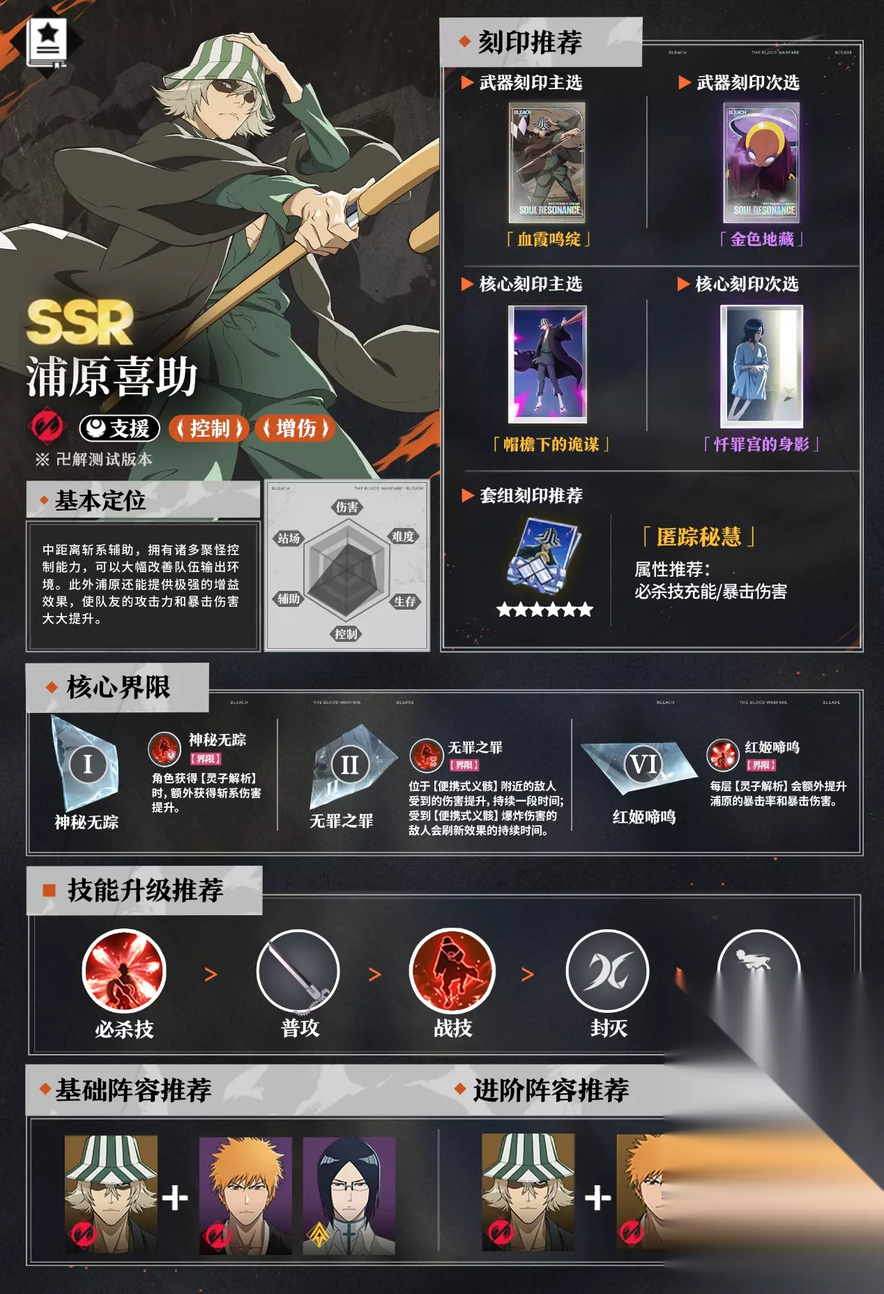关于刻印选择,许多有经验的玩家更倾向于强化夜一的爆发力。而且武器刻印,首选推荐【自打与鬼道的结合】,能够让近战连招的伤害更集中;其次是【桀骨·上】,能字啊在长时间战斗中提供稳定加成。核心刻印方面,【厉雷驰骤】能显著提升她的爆发伤害,被视作首选。