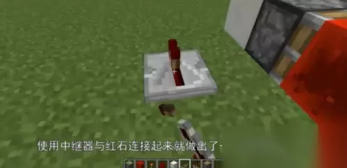 5、使用中继器与红石连接起来就做出了一个半自动刷石机。