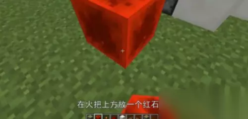 4、在火把上放上一个红石块。