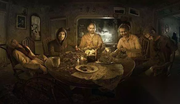贝克一家 接下来就是本作最经典的一幕,男主从晕死中醒过来,贝克一家围坐在餐桌前欢迎男主的到来,充满着温馨与幸福(如果不提那一桌人肉盛宴的话)!伊芙琳操控着她奶奶玛格丽特死个劲儿的往男主嘴里塞人肠子,男主抵死不从!正在伊芙琳准备控制贝克暴揍男主的时候警察来了,他们不得不离开餐桌去处理警察的问题。(警察之所以会来,主要是贝克农场附近近两年不断有人员失踪,警察也对农产产生了怀疑,所以过来看看,至于为什么不断有人员失踪?你懂的,小女孩儿又不会买菜做饭,反正看见什么吃什么,只要不是自己家人就行)其实这时伊芙琳就坐在轮椅上和男主同处一室,经过3年的折磨,她自身也被病毒所侵蚀,变成一个垂垂老矣的老太太瘫坐在轮椅上,她的时间应该也不多了,这也是小红伞公司后边为什么决定结束观察实验处理掉她的愿意吧。 趁贝克一家去处理警察问题的时候,男主拼命挣脱了绳子跑出餐厅,经过了九死一生、各种解谜各种躲与贝克一家捉迷藏,几乎走遍了楼上楼下地下通道的每一个房间(期间警察也被斩首,男主一直处于极度弱势的局面,贝克一家基本上无敌),历经千辛万苦最终终于在佐伊的指引下暂时搞死了被伊芙琳控制的贝克农场主,跑出了大房子,在空地的小房车里与佐伊再度联系。 在房车里,男主接到了佐伊的电话,佐伊告诉他只有找到解毒血清才能把她和米娅从被控制的状态中解救出来,血清应该被玛格丽特放在沿水建造的老房子里。于是接下来男主又开始了他新的征程,拼死获得火焰喷射器后也了解到合成血清没那么简单(内心肯定是崩溃的,正常人已经疯了),需要特定的两样AB材料,并跟佐伊约定好找到全部合成血清的材料后一起在空地上的房车里汇合。