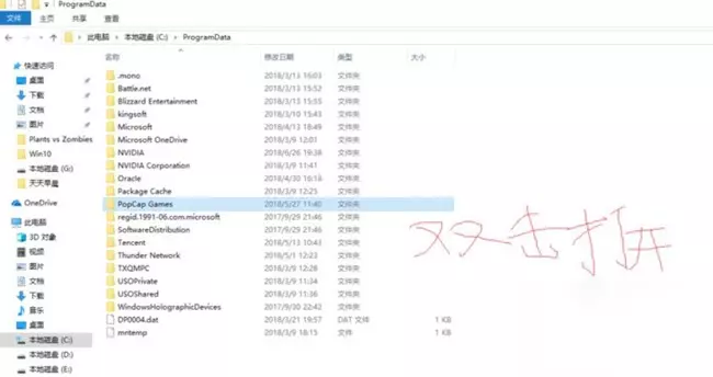 3、打开之后找到“PopCap Games”文件夹双击打开,其中“userdata”文件夹就是游戏植物大战僵尸的存档。