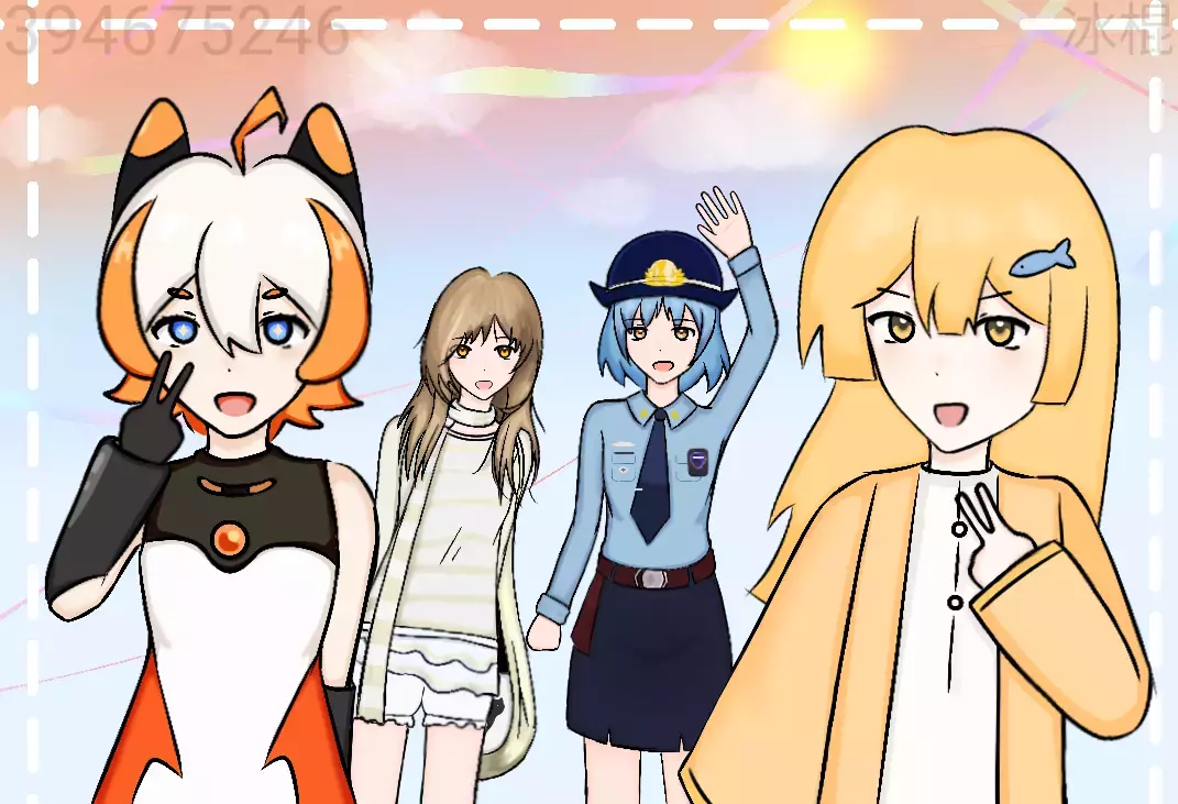 画的是三位官方和233娘的合照